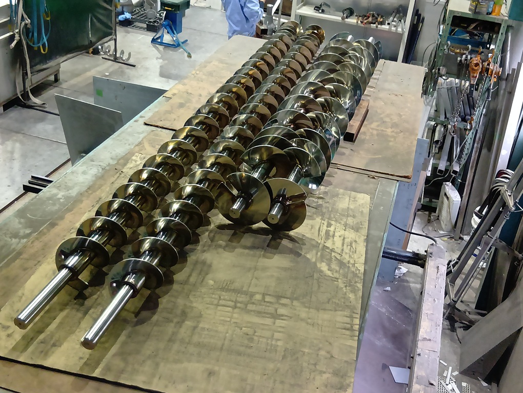 スクリューフィーダーを10台以上製作しています。これは複数の会社のご依頼分を1社がとりまとめて受注したものです。