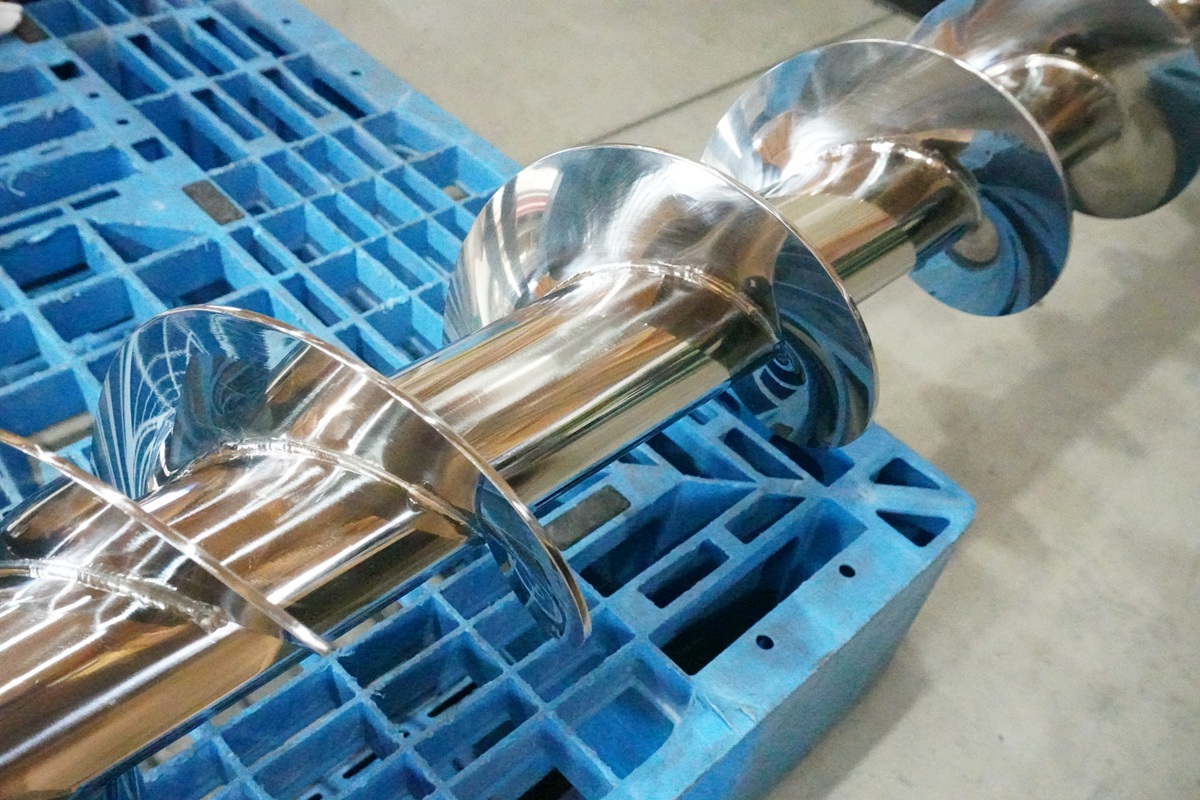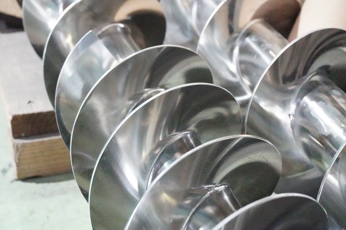 バフ研磨後のスクリューフィーダーがこちら。まるで色が変わったように光沢が出てきれいになりました!